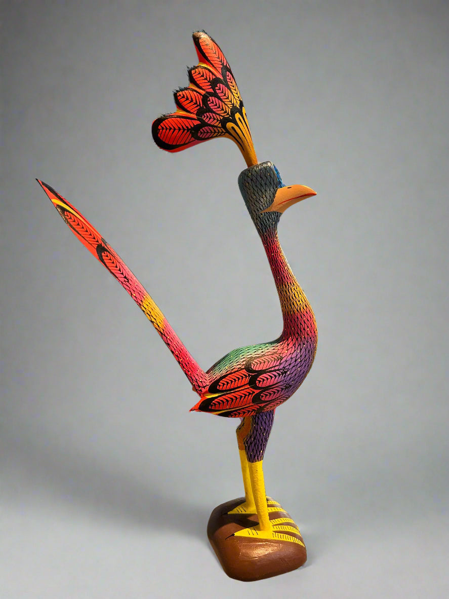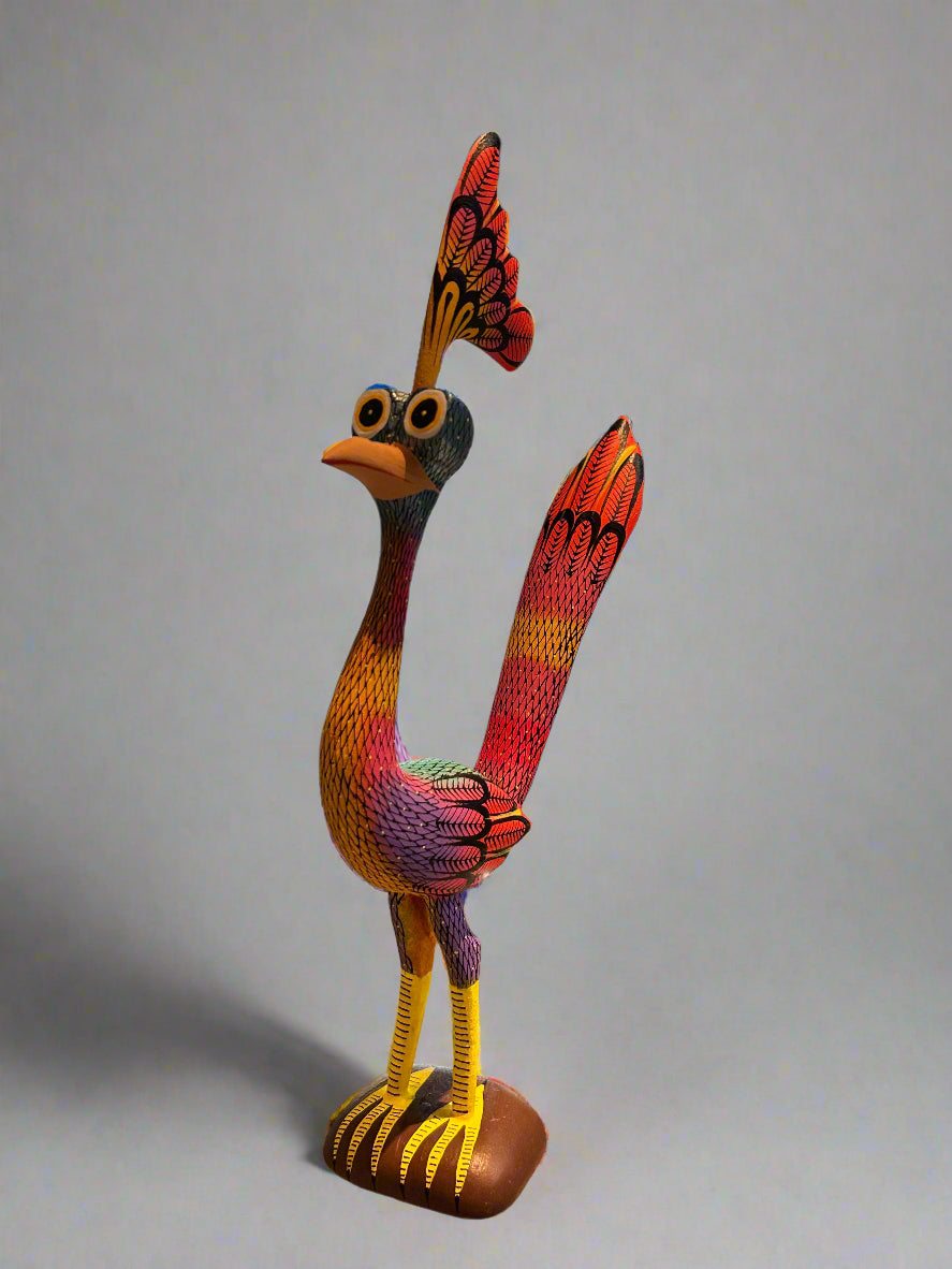 Brightly painted, whimsical wood carvings made in the Oaxaca, Mexico.