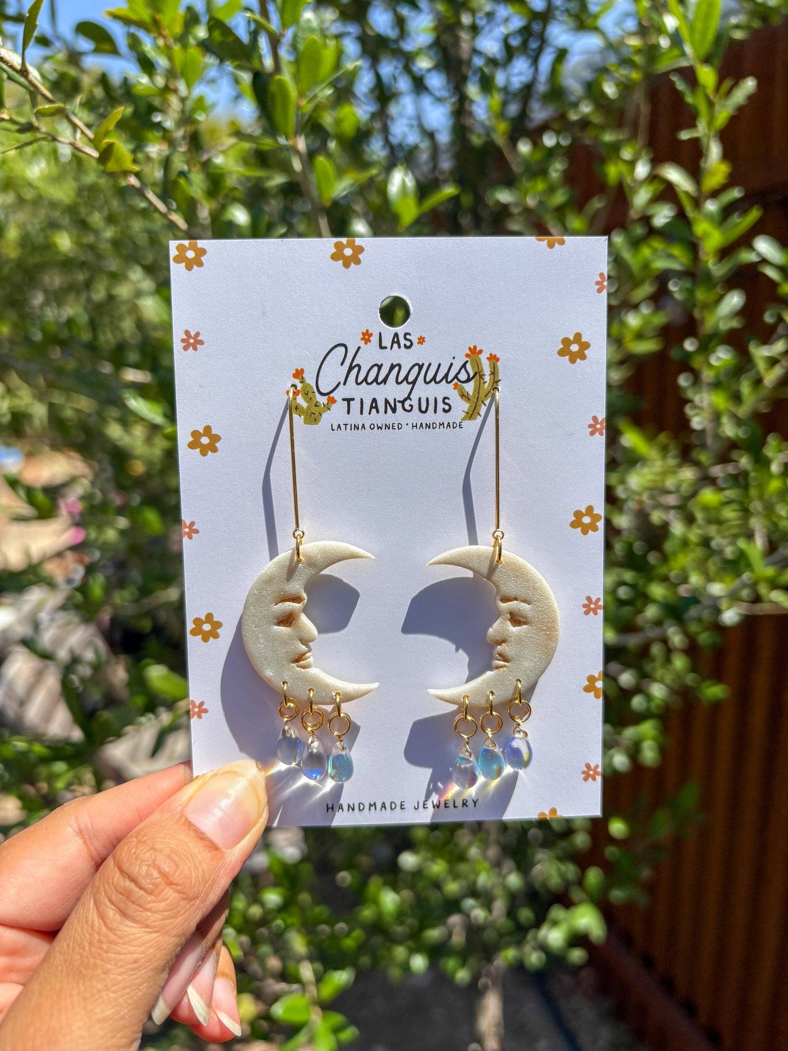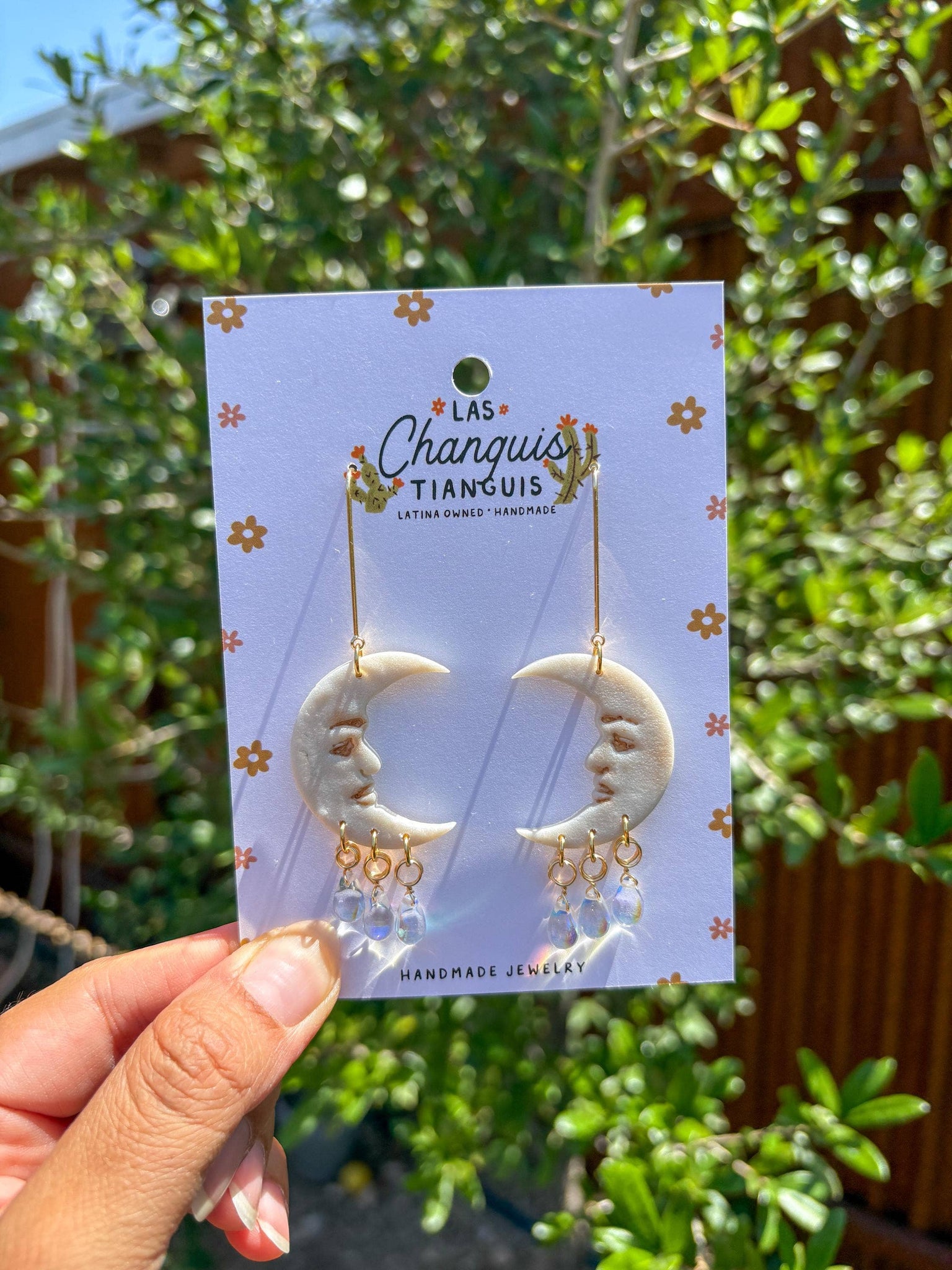 Golden Sun Face Clay Earrings with Beaded Drops