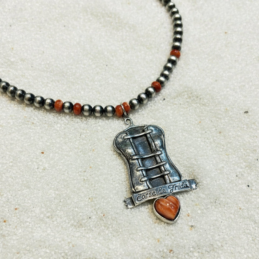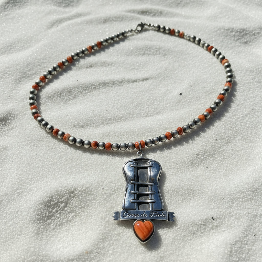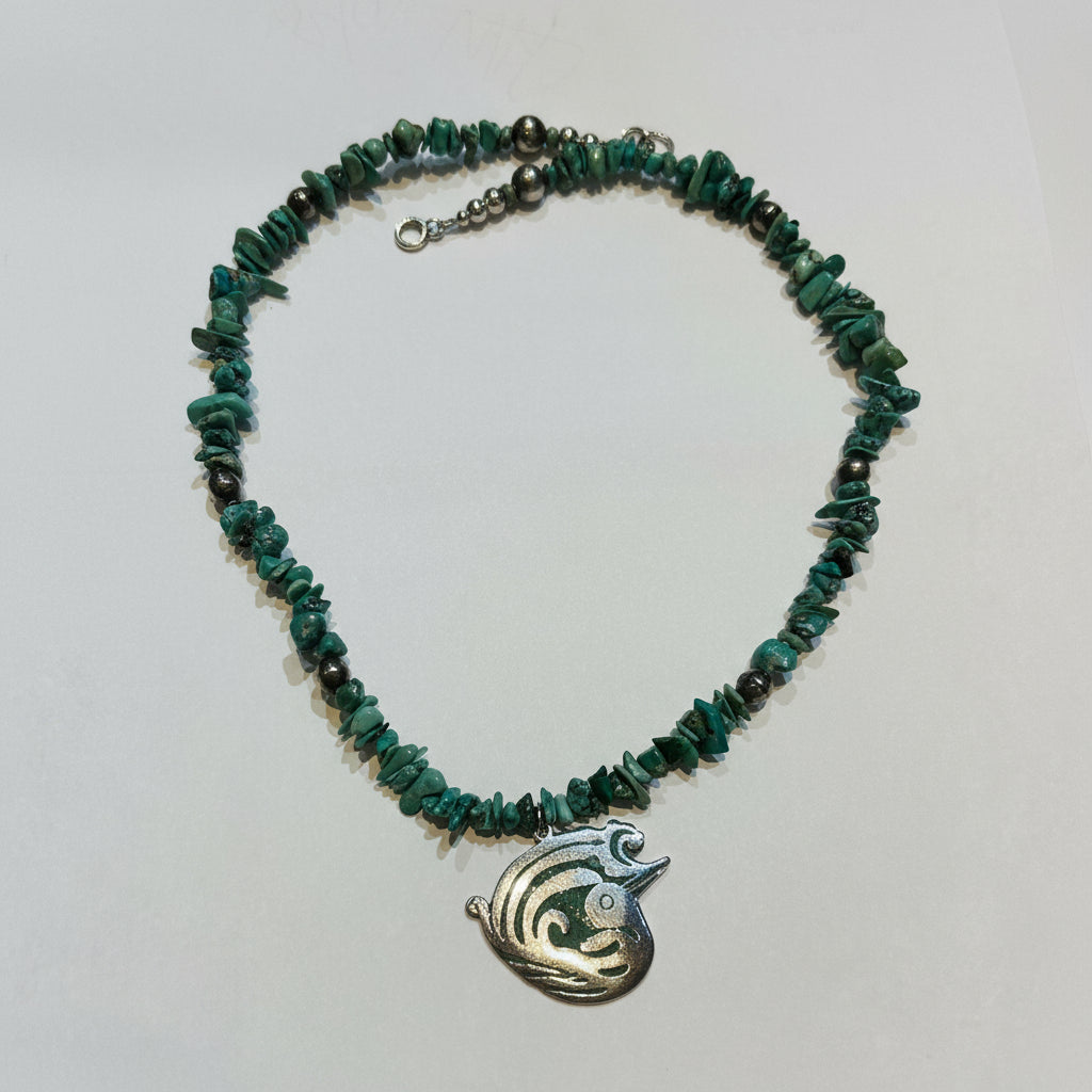 Singing Small Chuparosa with Turquoise Inlay Necklace - Doreen Villanueva